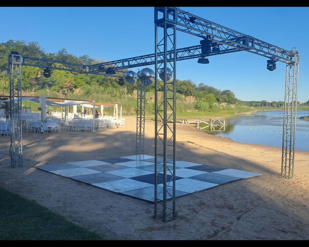 Creamos atmósferas únicas con luces sincronizadas, efectos especiales, estructuras, pantallas LED y ambientaciones visuales dinámicas.